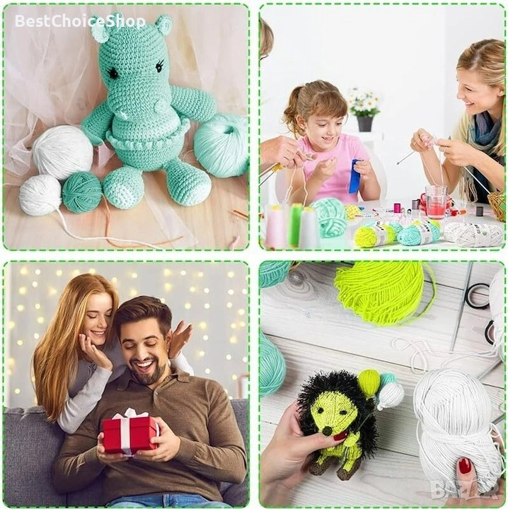 Текстура: Има мека, памукоподобна текстура, която не се разтяга, което я прави подходяща за амигуруми (плетени играчки) и други проекти.