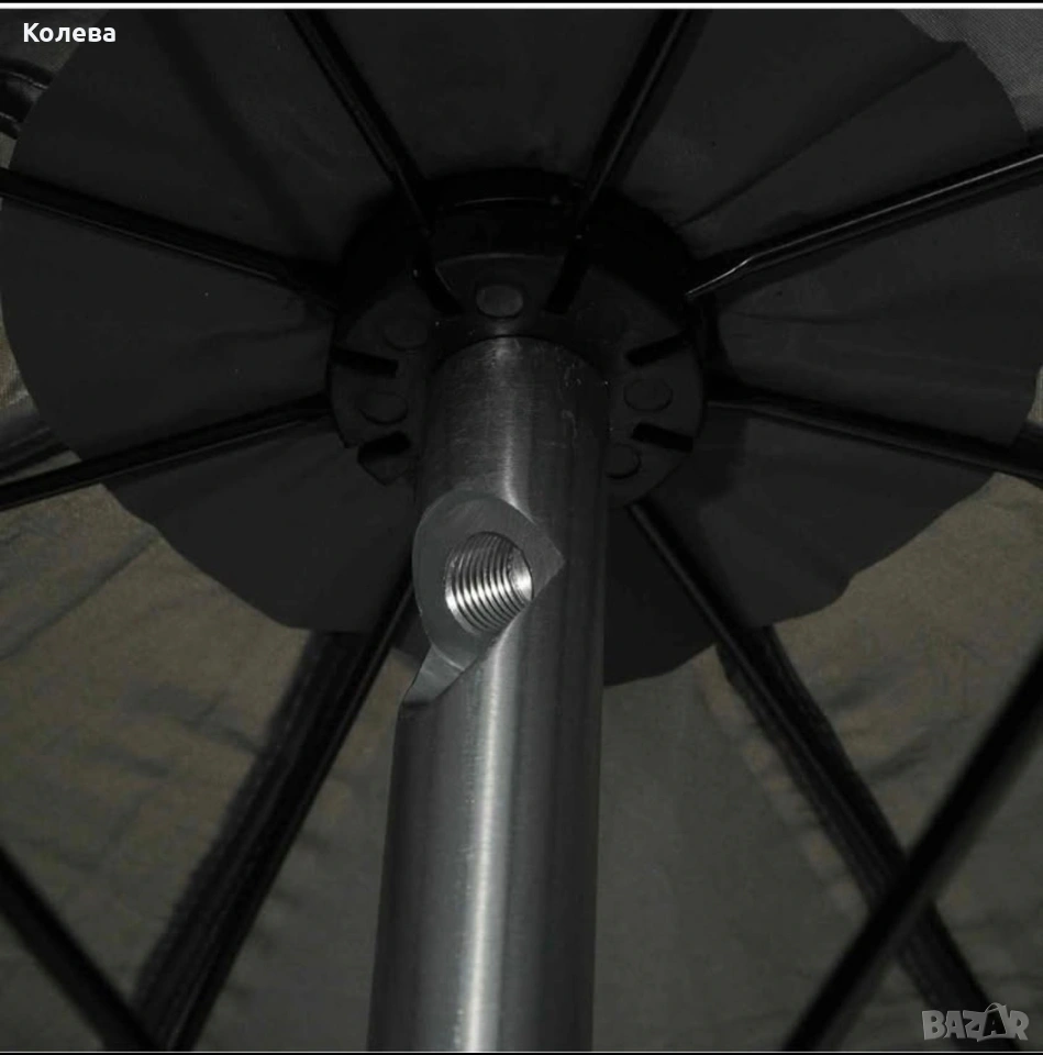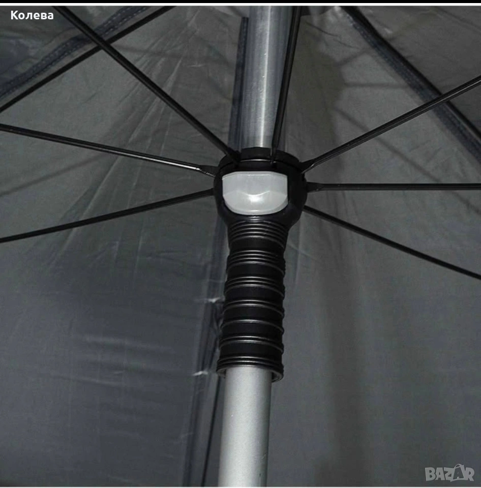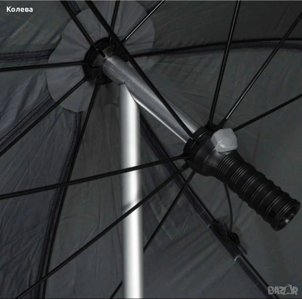Чадърът е снабден с покривало, така че може лесно да се транспортира за риболов.