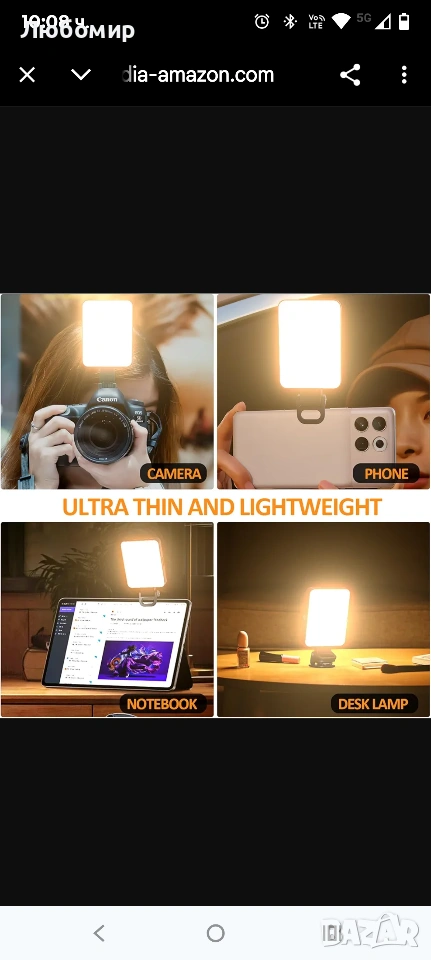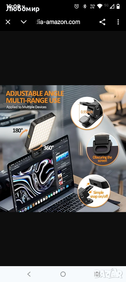 Дизайн с двойна щипка: Оборудван с предни и задни щипки за удобно закрепване към телефони, таблети, лаптопи и други.