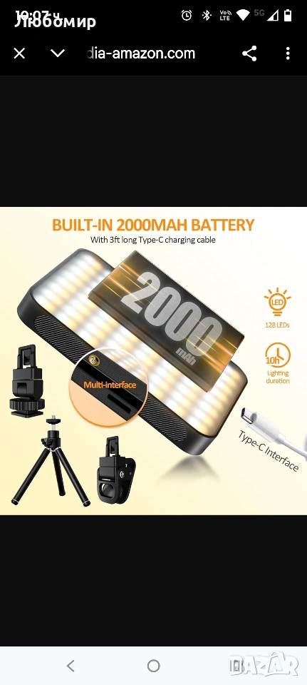 XJ77 Селфи светлина, светлина за телефон с предна и задна щипка, преносима светлина 128LED с 3 режима на осветление, акумулаторна видео светлина 2000mAh за телефон, iPhone, iPad, лаптоп, TikTok, грим, стрийминг на живо, влог.Универсален инструмент за осветление: Тази селфи лампа с 60 LED е идеална за телефон, лаптоп, TikTok, грим, стрийминг на живо и влог.