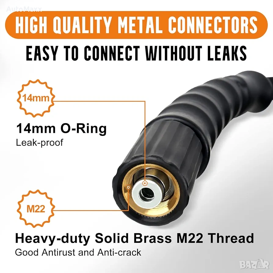 Маркуч за водоструйка Corretic 30 FT x 3/8 инча 4000 PSI, устойчив на прегъване, резервен маркуч за водоструйка, месингова резба M22-14 мм, оплетка от високоякостна тел