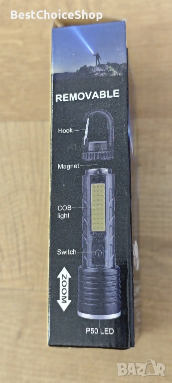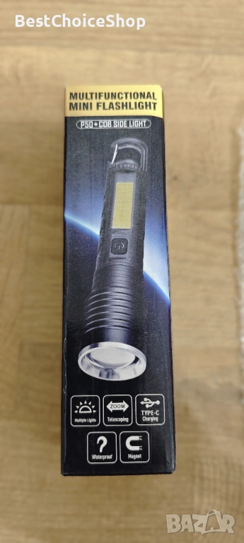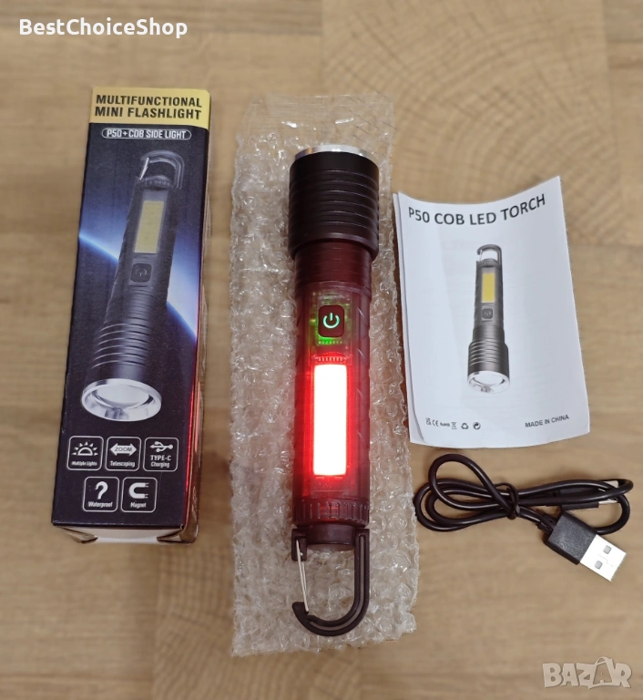 P50 COB LED фенерът е многофункционално, акумулаторно мини фенерче, направено от алуминиева сплав, предназначено за различни дейности на открито и ежедневна употреба. Предлага се с различни функции, включително странична COB светлина, телескопично увеличение (ZOOM) и Type-C зареждане.