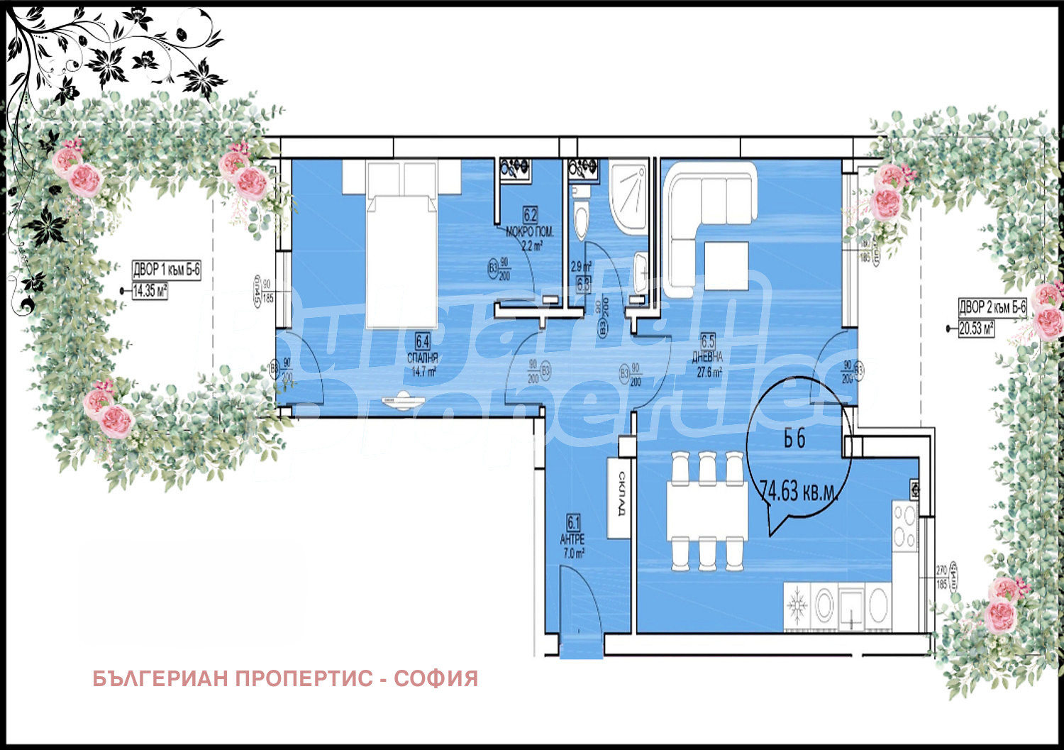 Жилището разполага с две дворни площи, които осигуряват усещане за простор и връзка с природата.