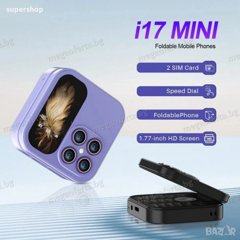 тагове: i17 pro, мини телефон, мини сгъваем телефон, мобилен мини