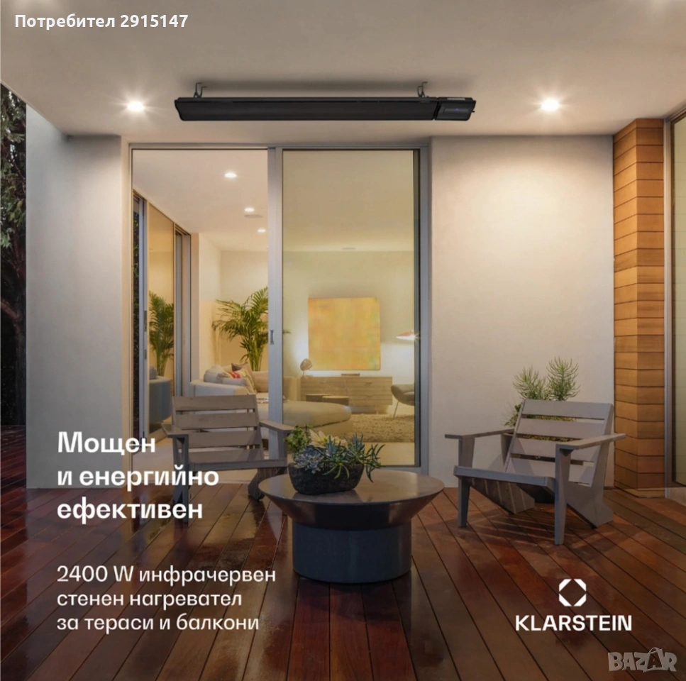 Нагревателят Blumfeldt Cosmic Beam Plus се монтира лесно на стената или на тавана. Така че не пречи, а в същото време с мощността си от 2400 W излъчва дълговълнова инфрачервена светлина бързо и ефективно, като потапя околността в приятна топлина. С помощта на инфрачервена технология топлината се насочва към облъчваните предмети и лица, така че не загрява излишно околния въздух. Така че дори студеният вятър няма да повлияе на топлинната мощност. Благодарение на използването на дълговълново инфрачервено излъчване нагревателят Cosmic Beam Plus не излъчва заслепяваща червена светлина. С удобното дистанционно управление можете удобно да го включвате и изключвате, да задавате температурата на околната среда между 5 и 45 °C или да включвате таймера за изключване. Планирайте вечери, градински партита и партита в гаража, без да се притеснявате от външната температура, защото инфрачервеният нагревател Cosmic Beam Plus ще ви стопли приятно. Нагревателният елемент с изключителна дължина от 153 см приятно затопля цялата празнична маса. Стабилната прахово боядисана конструкция от алуминий е устойчива на атмосферните условия. Благодарение на защитата IP24 устройството е най-добре оборудвано за използване на открито.