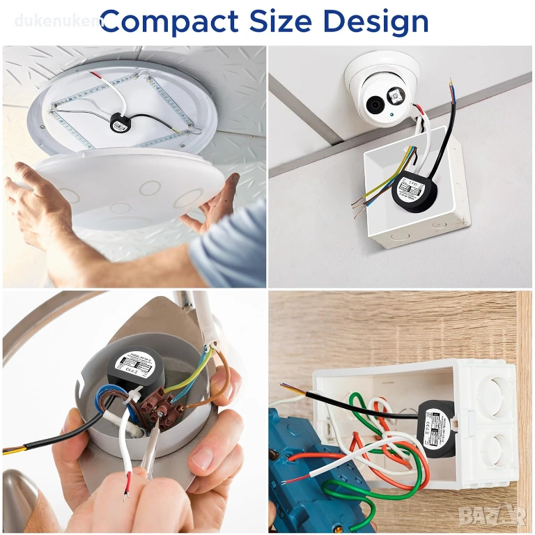 Компактен кръгъл дизайн – влиза лесно в разклонителни и конзолни кутии