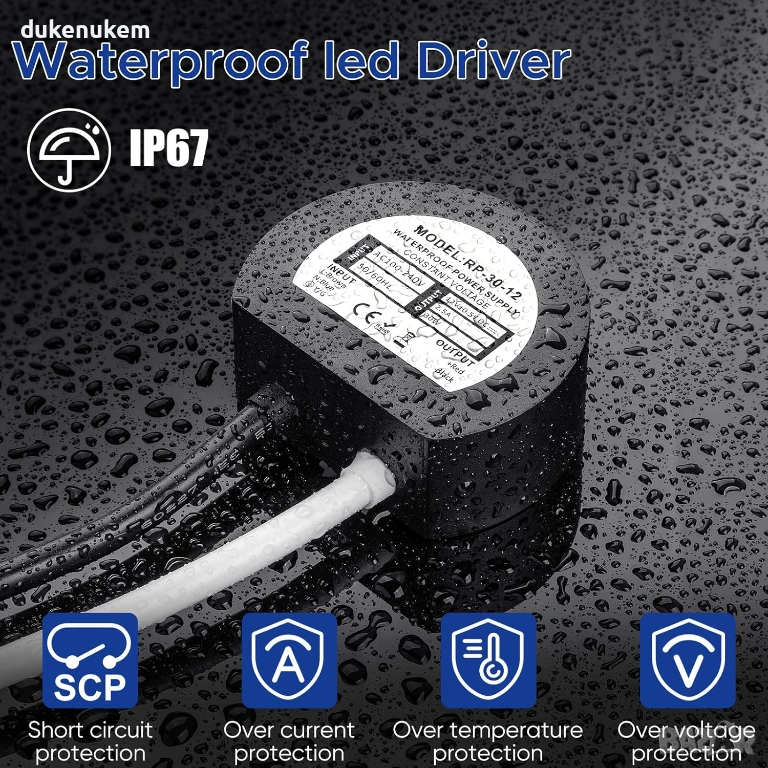 LED драйвер 30W 12V 2.5A IP67 – кръгъл, водоустойчив