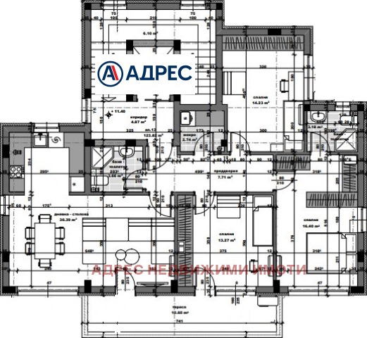 БЕЗ КОМИСИОН! Адрес продава в новострояща се сграда МНОГОСТАЕН апартамент в кв. Железник - център, Стара Загора. Имотът е разположен на панорамен етаж с площ 145,41 кв.метра. Жилището се състои от: просторна / 30м2/ всекидневна с бокс, ТРИ просторни спални, две бани със санитарен възел, мокро, хубава южна тераса и коридор. Изложение : изток запад и повече юг. Степен на завършеност : под-замазка; стени и тавани- шпакловка; дограма- PVC; външна блиндирана врата . Обади се СЕГА и цитирай този код: 681316