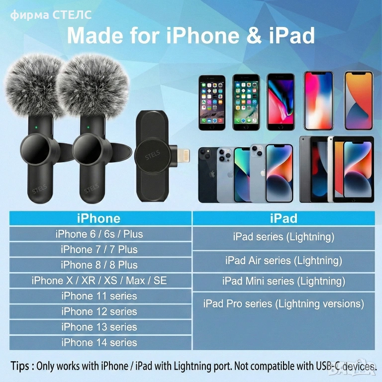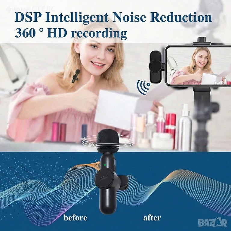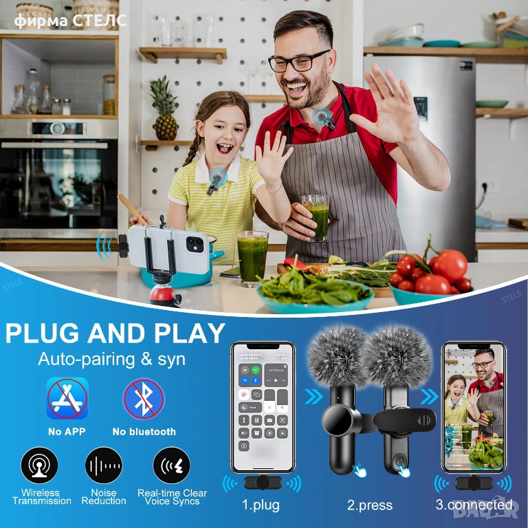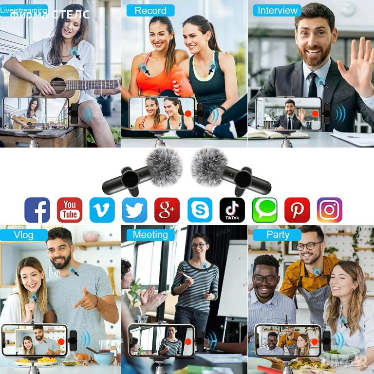 Записвайте видео с високо качество, където и да сте. Новият Безжичен микрофон STELS J12 Dual е тук, за да реши проблемите ви с лошото аудио. Този модел е специално проектиран за устройства с Lightning букса.