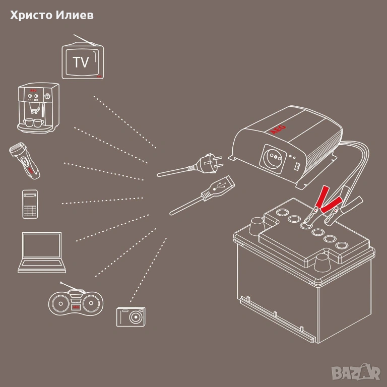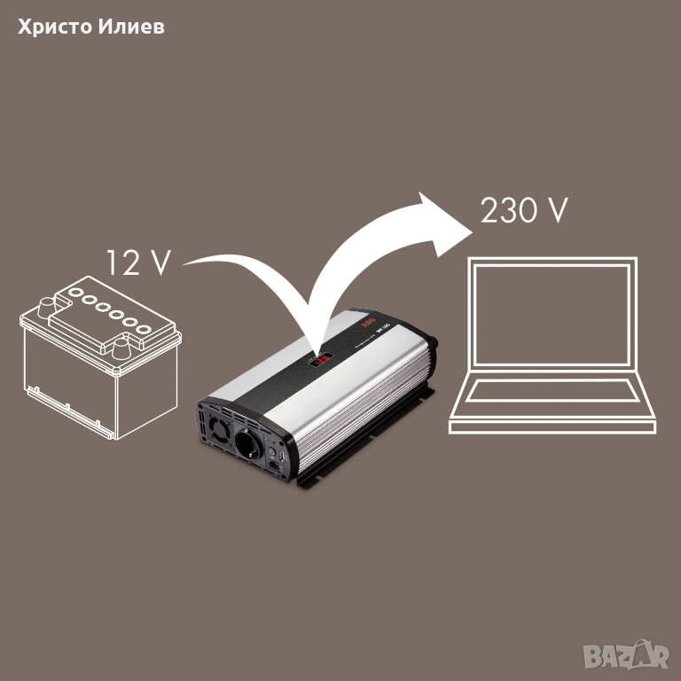 Входно напрежение: 12 V DC – от автомобилен акумулатор, слънчев панел или акумулатор на лодка