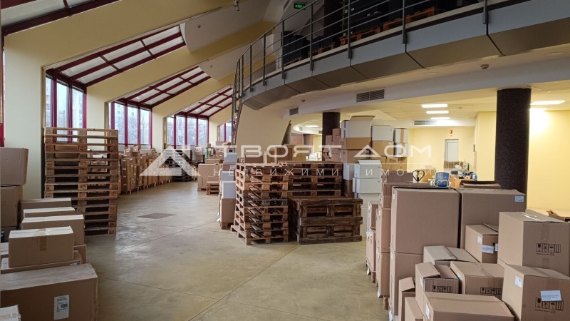 Агенция за недвижими имоти Твоят дом отдава мултифункционално търговско помещение на две нива с обща площ 917 кв.м. Партерът (535 кв.м.) и второто ниво (382 кв.м.) са свързани с вътрешна стълба и товарен асансьор. Имотът разполага с два входа - представителен вход със стъклена врата за клиенти и служители и товарен вход с автоматична двукрила врата, подходящ за мотокар, с рампа на кота нула. Осигурени са паркоместа пред обекта, както и възможност за обособен паркинг до товарния вход. При необходимост може да се наеме допълнителна складова площ на сутеренно ниво с достъп чрез товарния асансьор. Подходящ за магазин, шоурум, офис и склад в една функционална конфигурация.