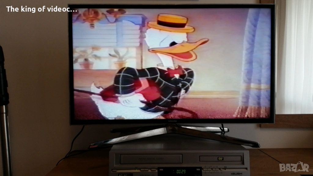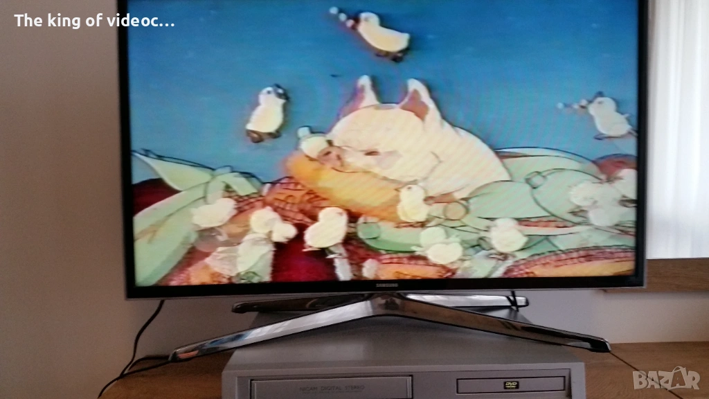Продавам видеокасета с едни от най - известните анимации : Слончето Дъмбо < ( оригиналната версия на Дисни ) , Гуфи-фокустник , Чип и Дел , Плуто < ( Кучето на Мики Маус ) , Доналд Дък, Farmyard Symphony 1938 година < ( Симфония на фермата ) и други . 17 снимки на касетата в работещо състояние. Озвучена на български език. Изпращам с Еконт или Спиди . Цена 10 евро.