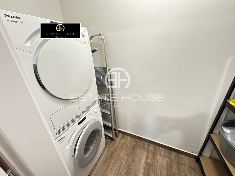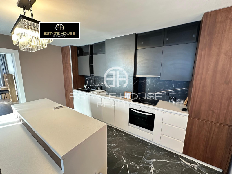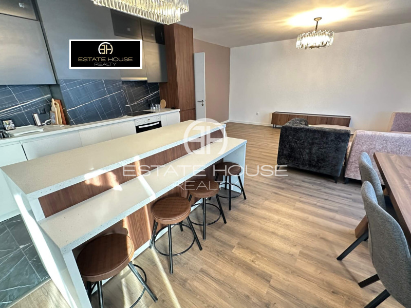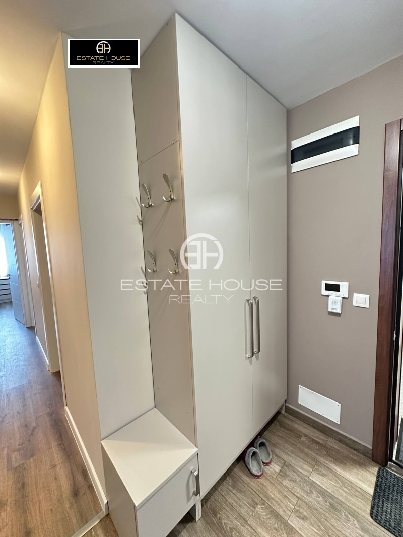 Жилището се състои от: входно антре, просторен хол с трапезария и кухненски бокс, три спални, като едната е преходна от дневната, две бани с тоалетна, едната от които е самостоятелна към родителската спалня, мокро помещение и балкон с впечатляваща панорамна гледка към Витоша планина. Апартаментът се отдава напълно обзаведен и оборудван с висок клас електроуреди, като кухнята разполага с хладилник, фурна, стъклокерамични котлони, съдомиялна и абсорбатор, а мокрото помещение е оборудвано с пералня и сушилня на водещия производител MIELE.