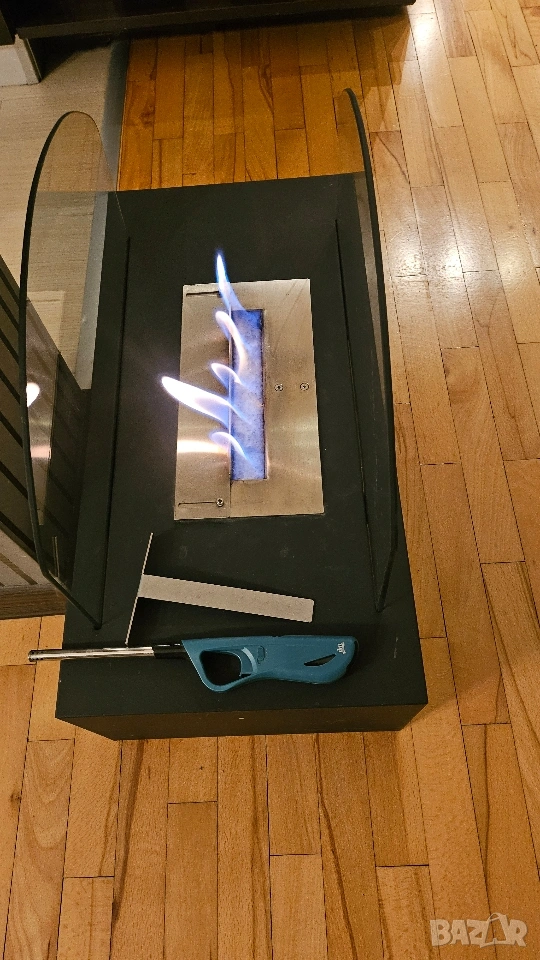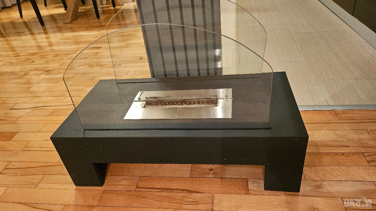 Висок клас камина с биоетанол от Fria. Перфектно състояние и външен вид като нова. Резервоар 1 литър, време на горена 3-4 часа с едно пълно зареждане. Размери 30 / 60 / 43 см височина. Декоративните стъкла могат да се махнат. Изглежда чудесно и в двата варианта.