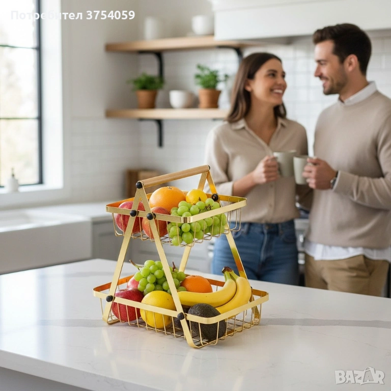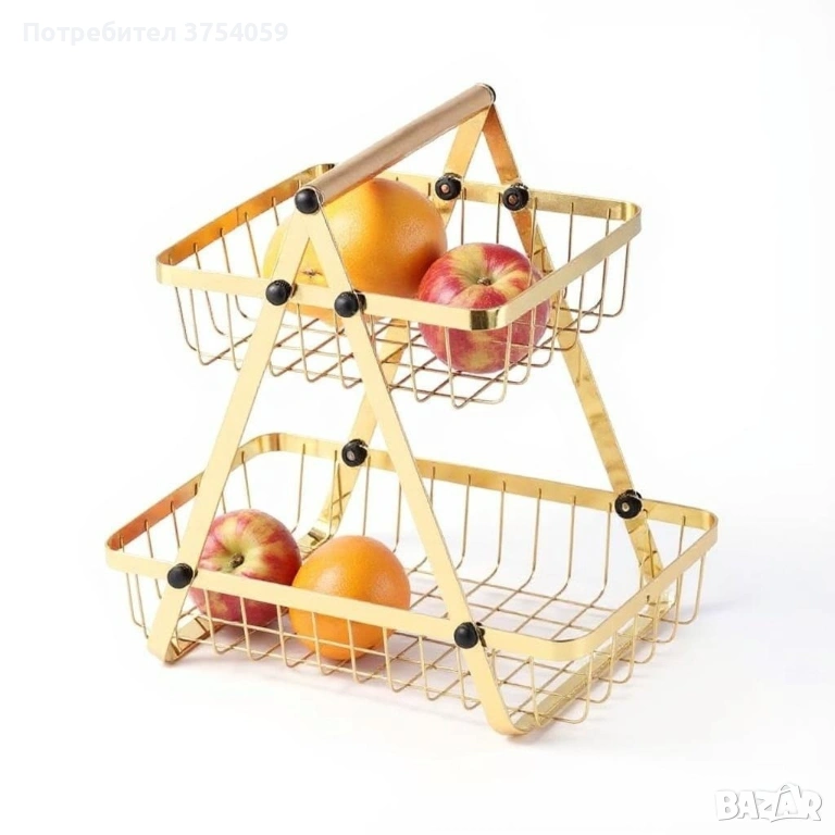 Двуетажна метална поставка за плодове Cheffinger – златист дизайн, компактна и стабилна → Обява 53174135