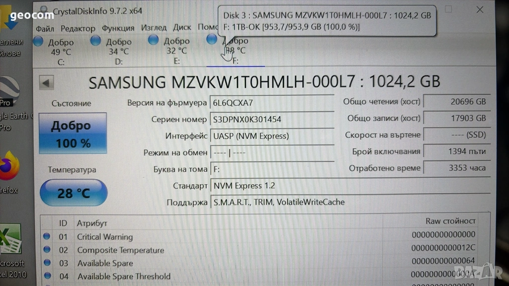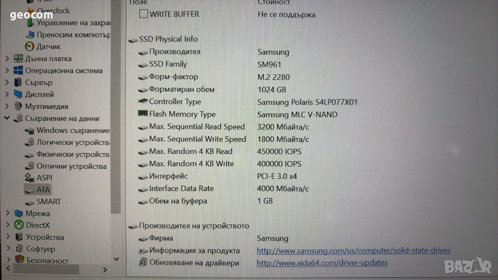 Kaпацитет: 1024GB.