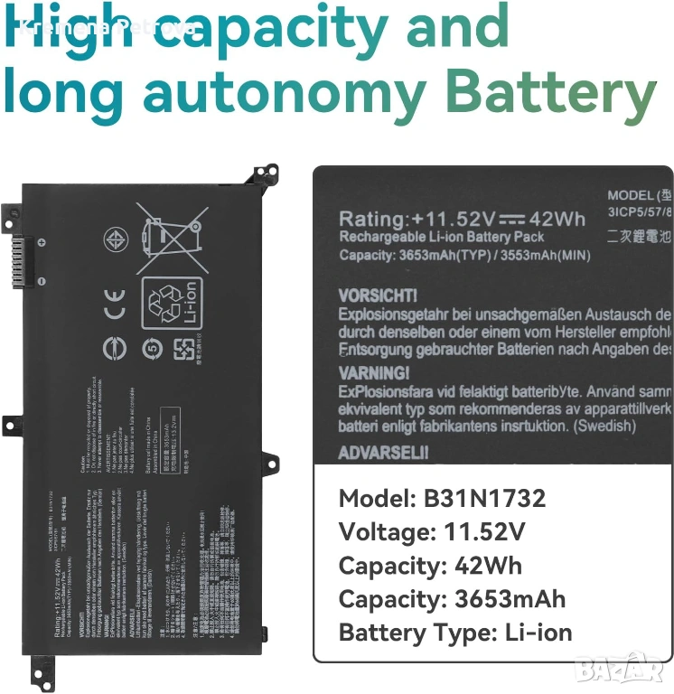 Доставка до СПИДИ АВТОМАТ 2,14€ - Батерия за лаптоп Asus Vivobook S14 42Wh B31N1732