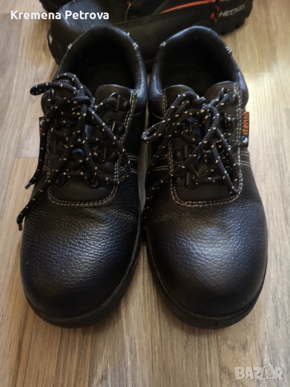 Работни обувки, направени по стандарт EN 345 определящ основните и допълнителни изисквания към обезопасяващи обувки за професионална употреба, включващи защитни елементи (бомбе и пластина) от удар, като те се изпитват на ниво 200J; 15Kn/q