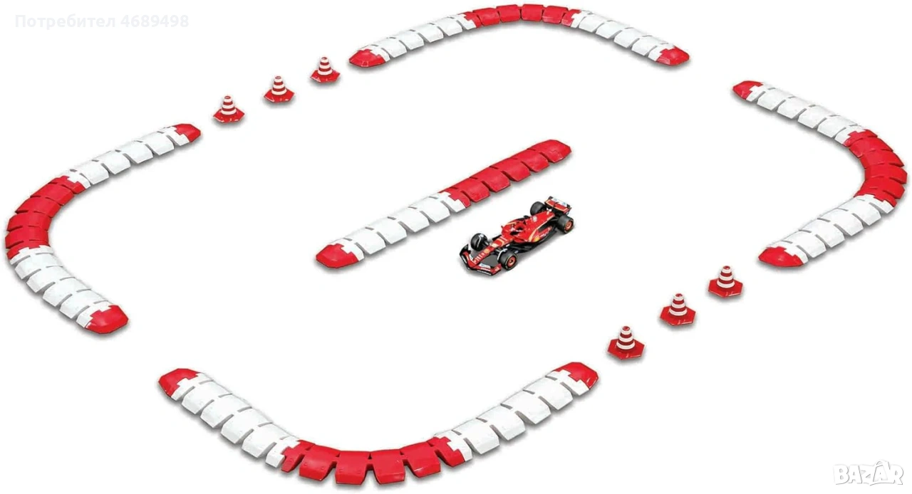 Formula 1 у дома с Bburago RC Ferrari SF-24 DieCast — страхотен радиоуправляем F1 модел със метална DieCast конструкция в мащаб 1:41 и включена писта/трасе за незабавни състезания!