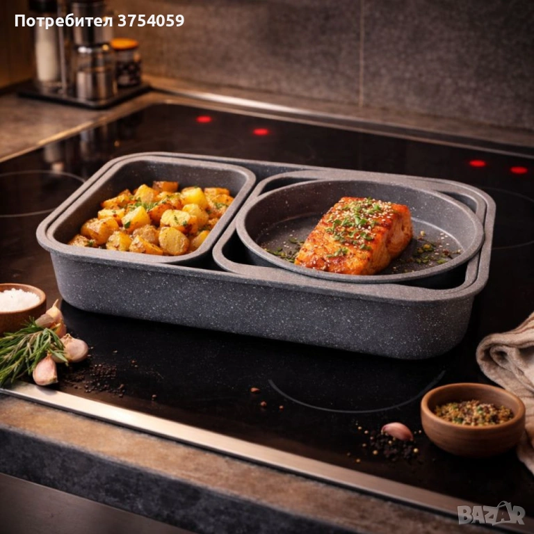 Комплект 4 тави за печене Cheffinger с мраморно незалепващо покритие – различни форми → Обява 53174464