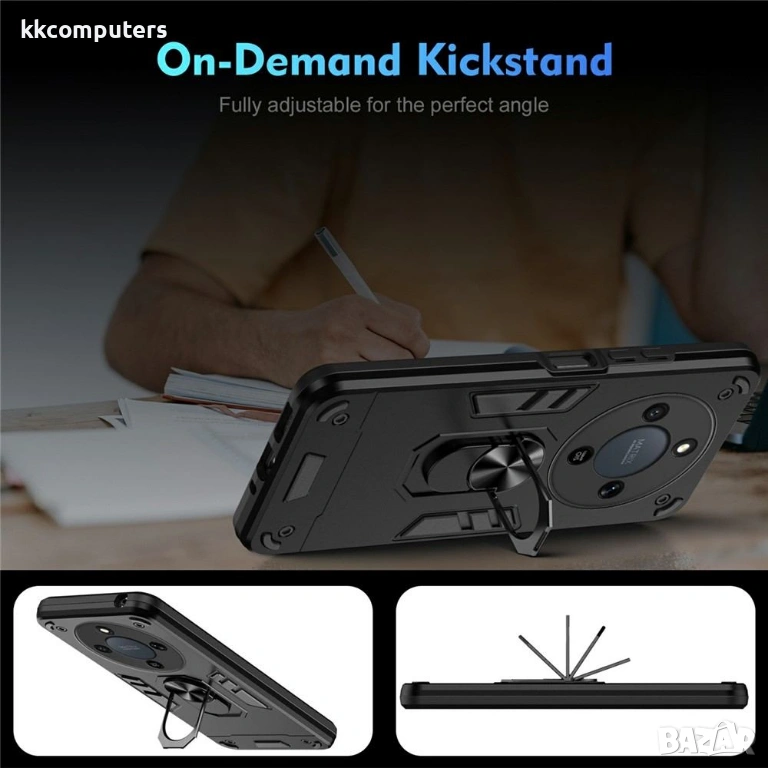 Ротационно кръстче (Ring Kickstand) със 360° регулиране: Универсалното ротационно метално кръстче служи както за удобен пръстен за хватка, предотвратяващ падания, така и за регулируем на 360° стенд, предлагащ перфектния ъгъл за гледане на видеа, видеоразговори или четене.