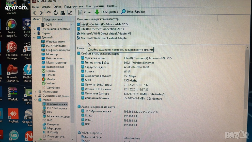 Intel G-Lan, Intel Centrino N 6205 Wi-Fi Adapter,