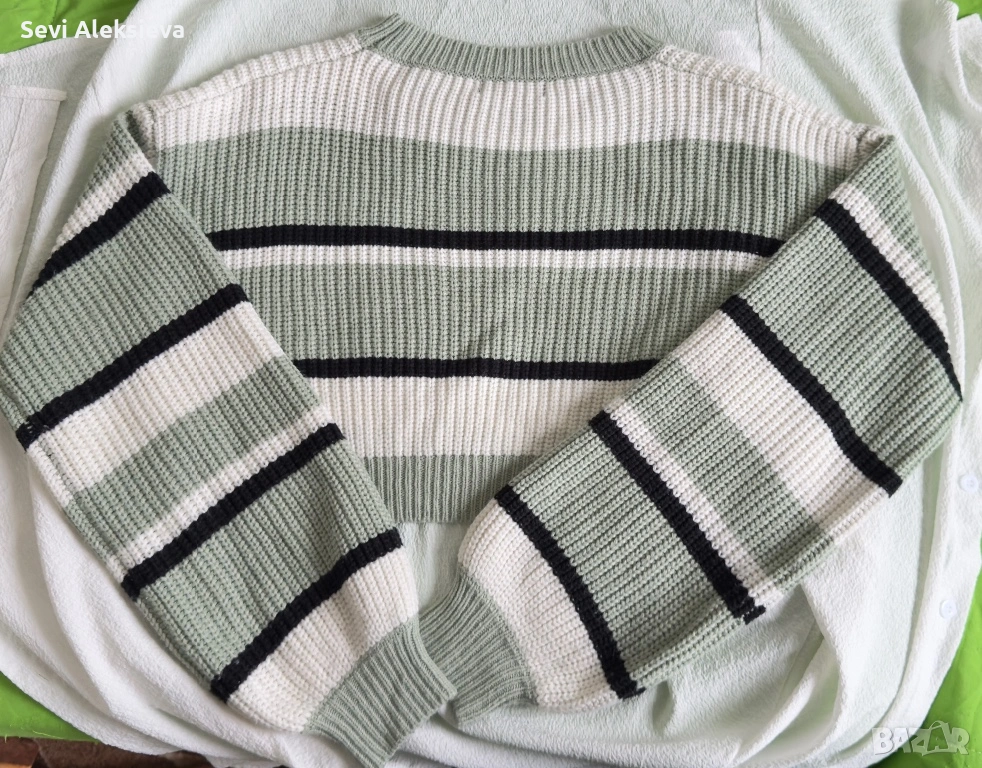 Дамски плетен пуловер с райе – размер S ( без етикет) → Обява 53174595