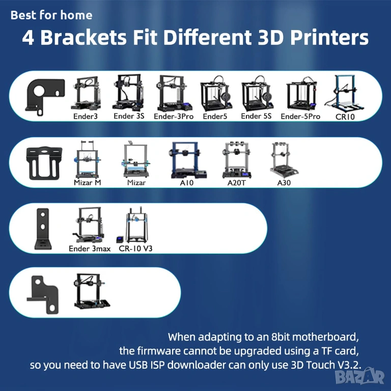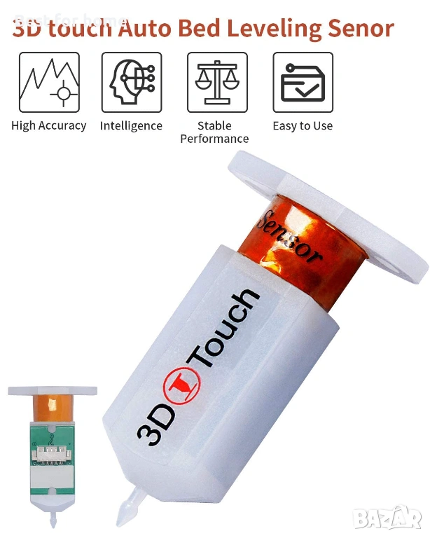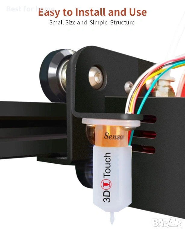 Просто: 3DTouch може лесно да се приложи, защото има малка и проста текстура. Настройката на информация и фиксирани елементи е лесна задача, тъй като 3DTouch работи като нормален автоматичен сензор за ниво на леглото.
