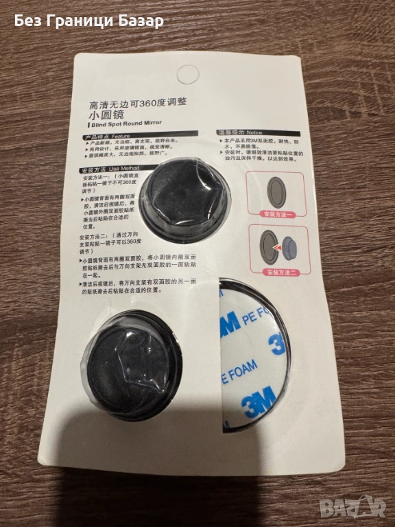 Нови Кръгло огледало за мъртва зона 360° за автомобил кола 2 броя комплект