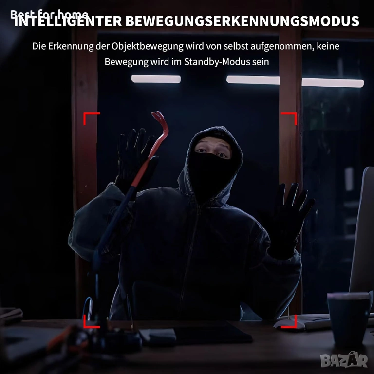 Интелигентно разпознаване на движение - Благодарение на вграденото разпознаване на движение, тази WiFi охранителна камера автоматично започва видеозапис или фотография, когато засече активност, и се връща в режим на готовност, когато няма движение. Тази функция е идеална за дългосрочни сценарии за наблюдение, където пестенето на енергия е от решаващо значение.