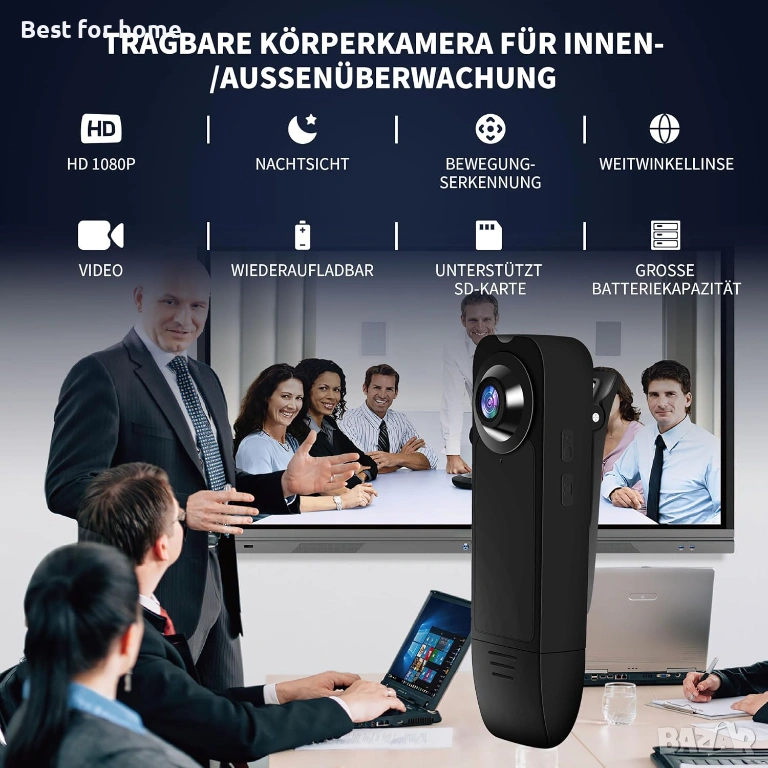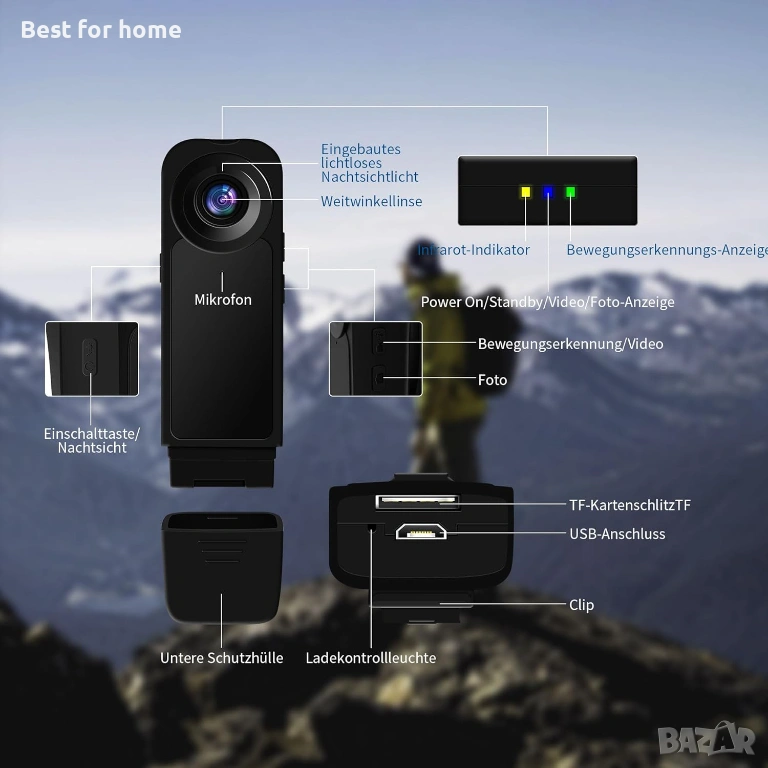 Компактен дизайн за лесно носене и монтаж - Лекият и компактен дизайн, заедно с вградената щипка, ви позволява лесно да прикрепите тази телесна камера на различни места, като дрехи, чанти, раници, колани и др. Тя е идеална за срещи, конференции, разходки с домашни любимци, пътувания на открито, полицейски задачи или колоездачни пътувания.