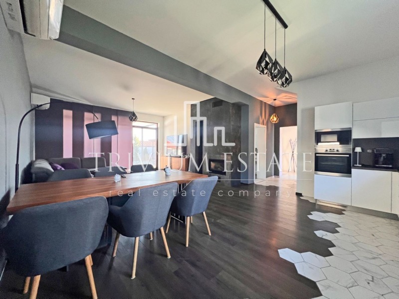 Агенция TRIVIUM ESTATE предлага под наем модерна самостоятелна къща с просторен двор и напълно обособена външна релакс зона, разположена в предпочитания квартал Коматево.
