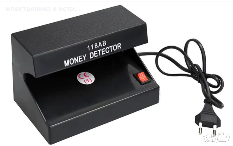 Детектор за пари 118AB, UV светлина, За фалшиви банкноти, 220V, Черен