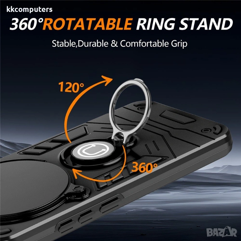 Метален пръстен за хватка и вграден стенд: Здравият метален пръстен служи като удобна опора за еднойдна употреба и се превръща в стабилен стенд за безръчно гледане на видеа, видеоразговори или сърфиране под идеален ъгъл.