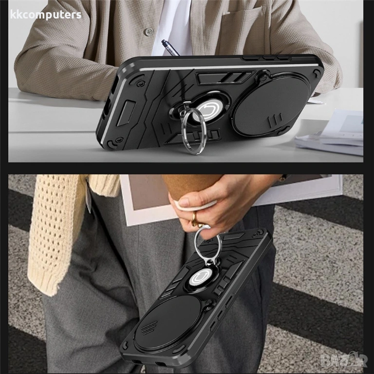 Функции: Метален пръстен за хватка/стенд, Вградена метална пластина за магнитни держачи