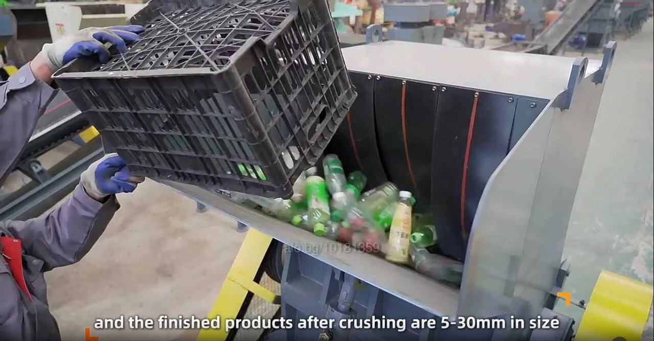 пластмасови бутилки = пластмасови торби = пластмасови фолиата = пластмасови отпадъци от 3D принтери = пластмасови тръби = текстилни торби = някой гумени продукти Спецификация: Производителност: 800-1200 кг/ час Цвят: в зависимост от складова наличност Тегло: 900 килограма Габарити: 2х 1, 5х 2, 1H метра Мощност на двигателя: 3000W Захранване: трифазно 380V AC или монофазно 240V AC Диапазон на дробене: 5-30 мм Допълнителни опции: - хидравличен цилиндър с ръчна помпа за вдигане на захранващата част на мелницата (може да се вдига и с телфер) - допълнителни сита по изискване на клиента - боядисване в цвят указан от клиента. - поставяне на ел. двигател с повишена мощност