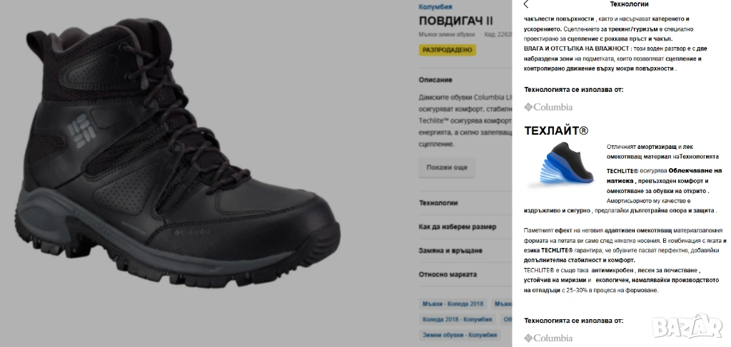 Columbia LIFTOP II са леки и водоустойчиви, които осигуряват комфорт, стабилност и защита. Междинната подметка Techlite™ осигурява комфорт, омекотяване и възвръщаемост на енергията, а силно залепващата външна подметка осигурява сцепление.