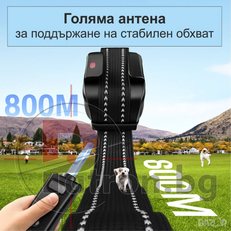 С обхват до 800 метра в открита среда, вие можете да командвате кучето си без забавяне