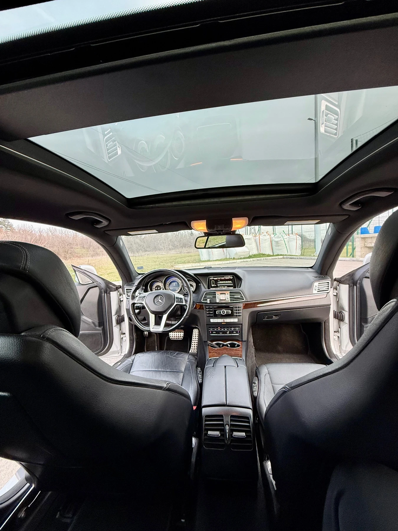 Mercedes-Benz E 550 Coupe AMG | V8 Biturbo | 409к. с. | 2014 г. 4. 7 V8 Biturbo, бензин, 455 к. с. Година: 2014 Пробег: 165 600 км Пробегът е реален и може да бъде проверен по желание на купувача в избран от него сервиз. Автомобилът е обслужен. Зимни гуми, сменени масла и филтри, накладки. Леки козметични забележки! AMG пакет, Advanced Agility пакет, окачване със Sport / Comfort режими, F1 пера на волана, Auto Hold. DISTRONIC (активен автопилот), Lane Assist, Collision Prevention Assist, Attention Assist, ABS, ESP, ASR, 4ETS, TPMS, преден и заден парктроник. Би-ксенон фарове, автоматични дълги светлини, фарове за мъгла, адаптивни стоп светлини, дъждовен и светлинен сензор, огледала с автозатъмняване. Панорамен изцяло стъклен покрив, кожен салон, ел. седалки с памет и динамична опора, подгрев на предни седалки, ел. задна щора, Keyless GO. Harman Kardon, навигация, Bluetooth, мултифункционален ел. кожен волан с махагон, бордкомпютър, ел. стъкла и огледала. Спортна генерация с дистанционно управление (ON / OFF) Възможен коментар на цената след оглед. ЛИЗИНГ !
