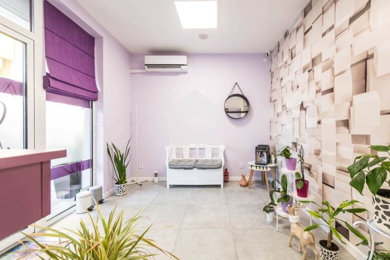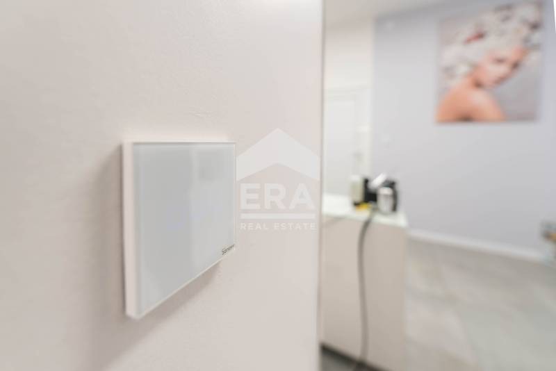 Имотът се отдава необзаведен, завършен до ключ, с кухненски шкафове и оборудвана баня с тоалетна. Помещенията имат високи тавани - 2,80 и 3 метра, прекарани са комуникации за мокра аспирация, енергоспестяваща техника и климатик, охранителна решетка, видеонаблюдение - 2 камери за външно наблюдение и 4 камери за вътрешно наблюдение, СОТ, защита за високо и ниско напрежение в ел. таблото. Поставен е качествен стъклопакет 4 сезона, за добро отопление на целия кабинет и преимущество за осветеността на цялото помещение. Осветителни LED панели предават максимално близка до естествената слънчева светлина осветеност. Цялата електрическа инсталация е сменена. Имотът е подходящ за различни видове търговска или творческа дейност - лекарски/стоматологичен кабинет, СПА/соларно студио, салон за красота, фризьорски/козметичен салон, банков офис, счетоводна/нотариална кантора, художествена галерия, детска занималня, учебен/езиков център, йога и др.