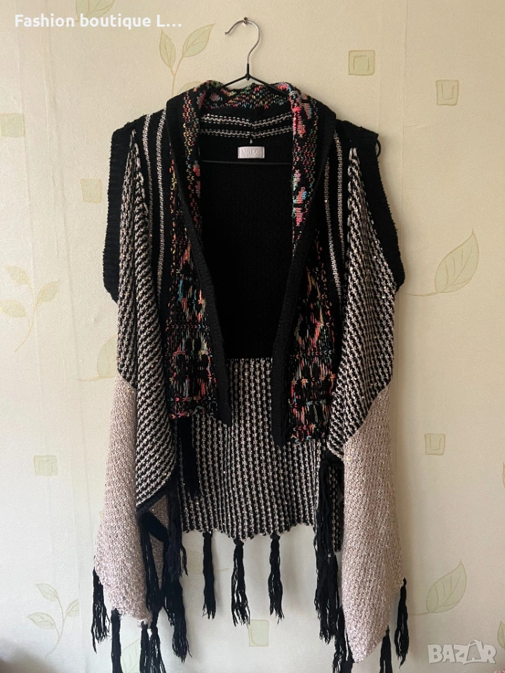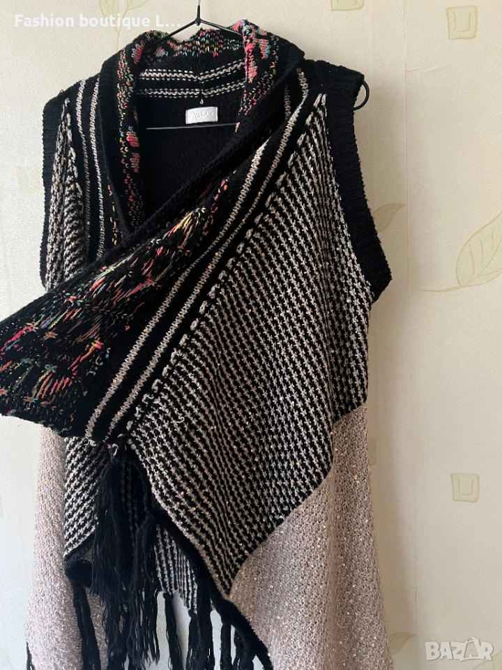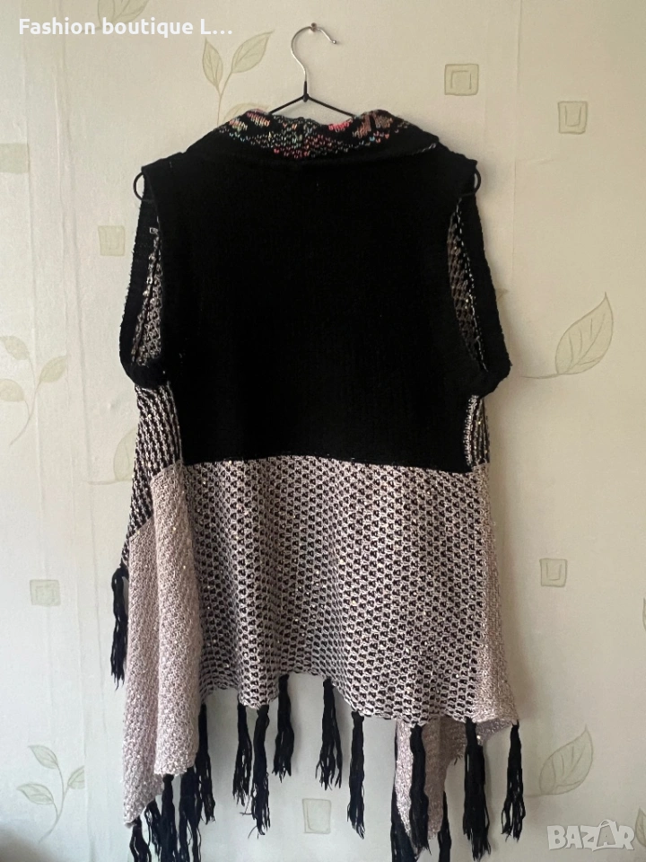 Уникална плетена жилетка с асиметрична кройка и различни цветове парчета плат → Обява 53176276