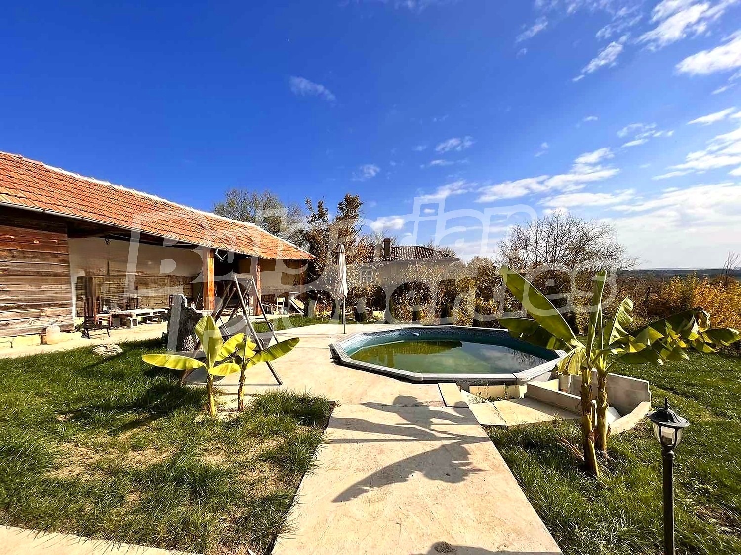 Предлагаме за продажба реновирана едноетажна селска къща със стопански постройки, просторен двор и басейн, разположена в живописно село с хълмист релеф, южно изложение, добри комуникации и целогодишен достъп.