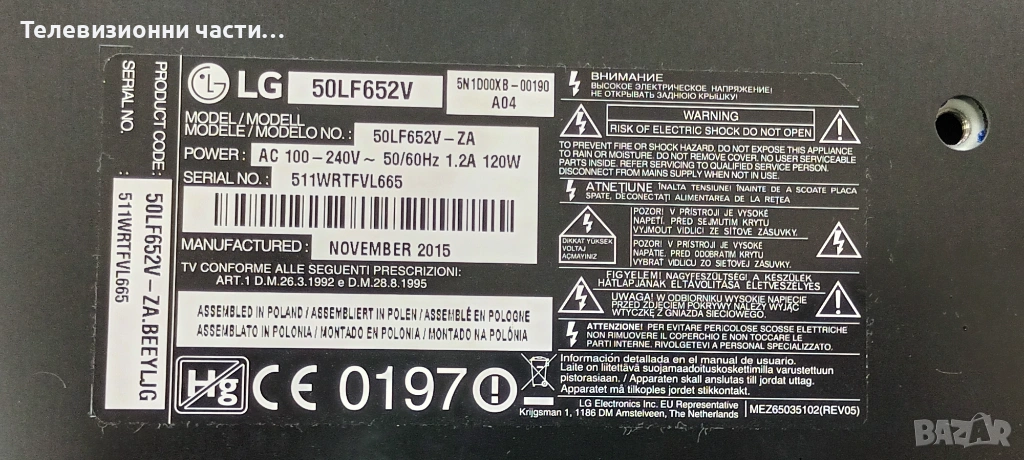 LG 50LF652V-ZA със счупен екран LC500DUH(MG)(P1)/EAX66207203(1.0) EBT63745803/EAX66203101(1.7)