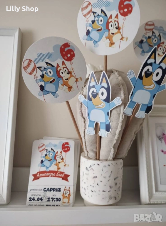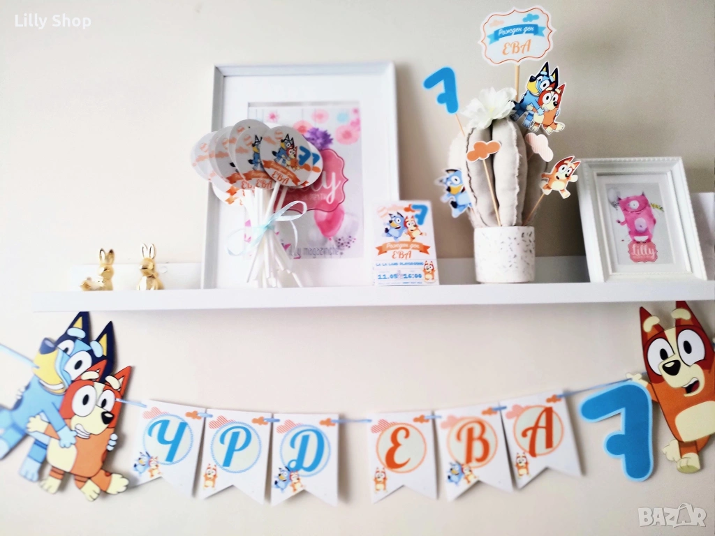 Покани, банер за рожден ден, украса Блуи / Bluey