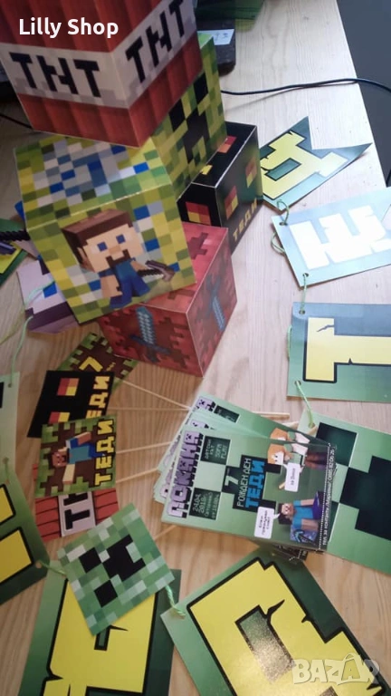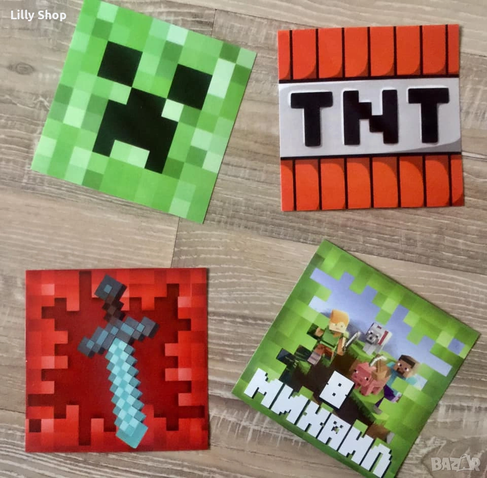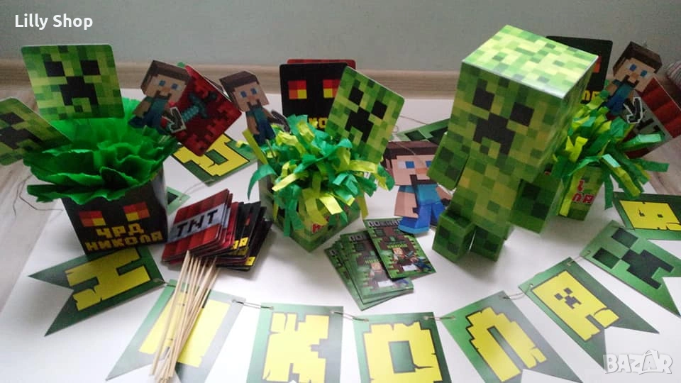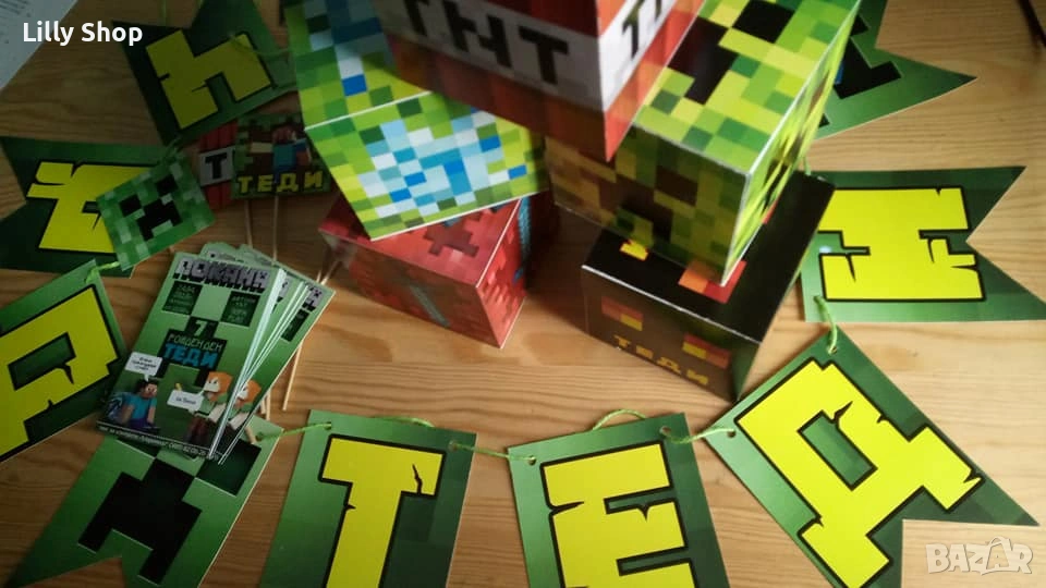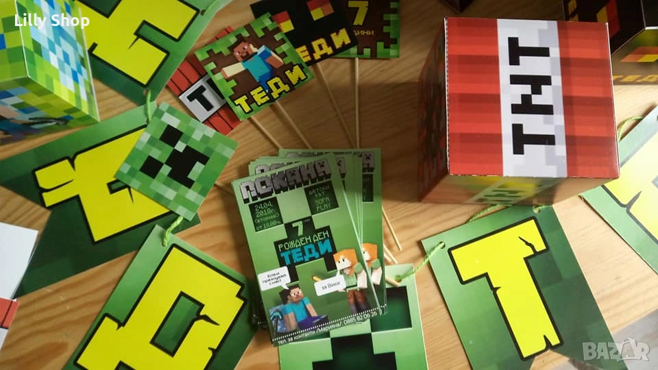 Покани, банер за рожден ден, украса Майнкрафт / Minecraft
