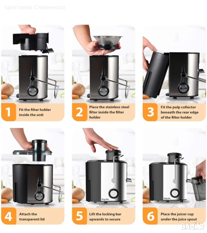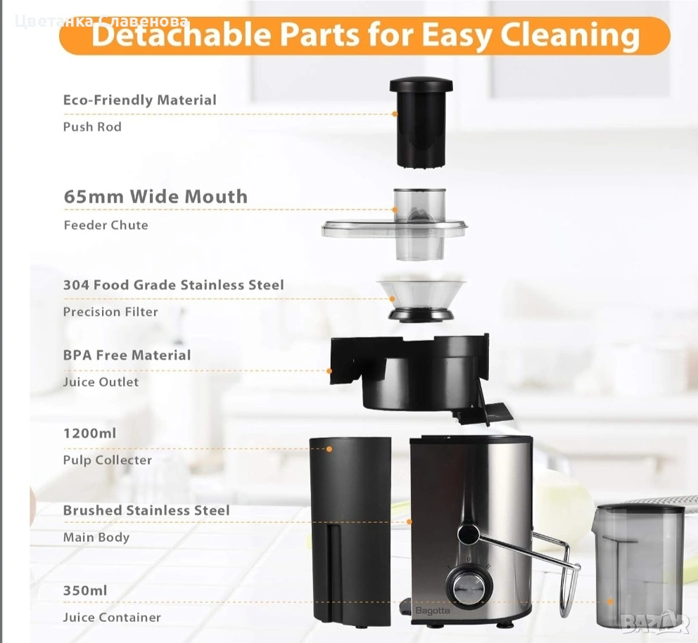 Сокизстисквачката Bagotte DB001 е изработена от неръждаема стомана за хранителни цели и материал без BPA.