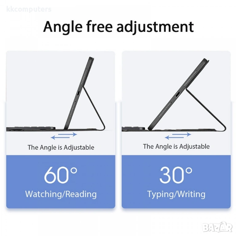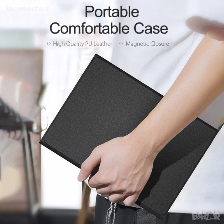 Калъфът може да се използва и като стойка, което позволява удобно гледане на видео, онлайн срещи или сърфиране в интернет без използване на ръце. Тънкият и лек дизайн го прави лесен за пренасяне и подходящ за мобилен начин на живот.