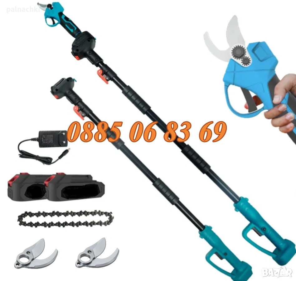 Комплект акумулаторна резачка и лозарска ножица 36V 8Ah с прът с 2 вериги и резервен нож