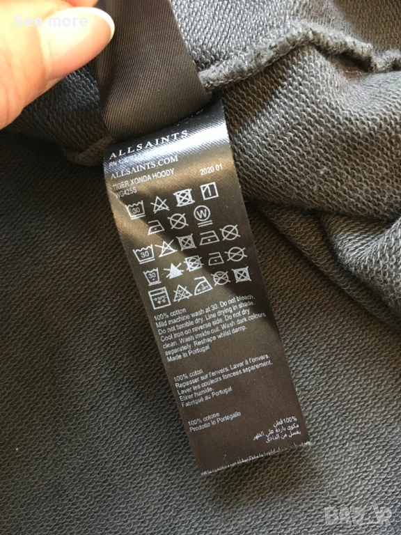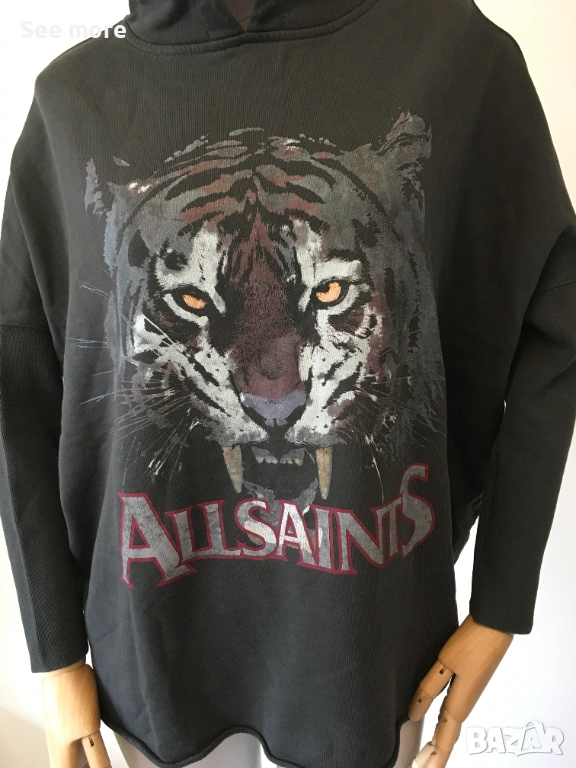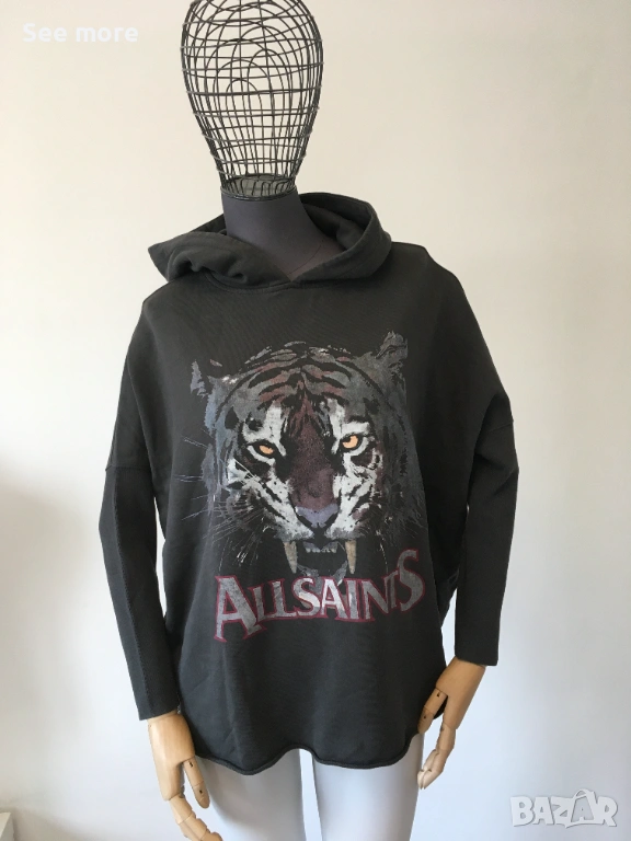 Дамска спортна блуза с качулка от марката All Saints. Дължина отпред 60 см,отзад 65 см,ГО 71 см! Перфектно състояние!Изпращам по Еконт и Спиди!