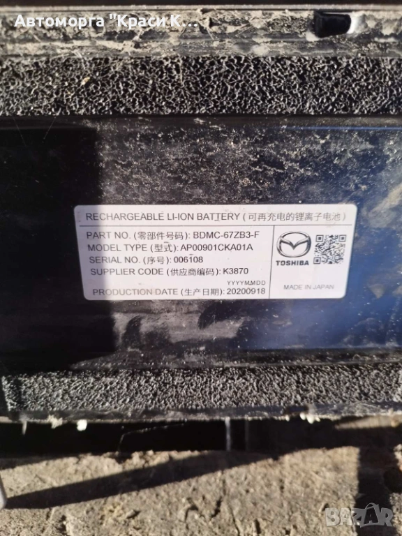K3870 Хибридна батерия за Мазда cx30 и Мазда 3 2022г в автоморга KRASI CAR, преди с. Кичево гр. Варна. ВСИЧКИ ЦЕНИ СА С ВКЛЮЧЕНО ДДС. ВСИЧКИ ЧАСТИ